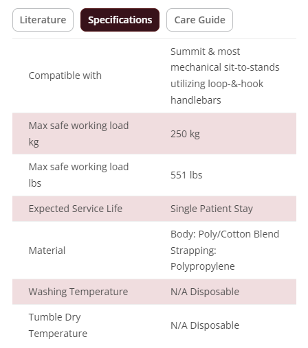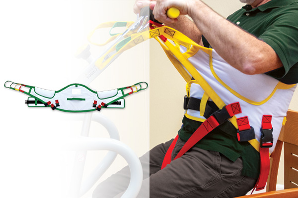 The disposable sit to stand sling with leg and seat straps is designed to move a patient easily and comfortably. This sling incorporates a padded back panel, multi-loop adjustable interface, and is color-coded for sizing. The safe working load is 551 lbs.