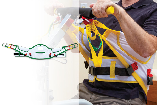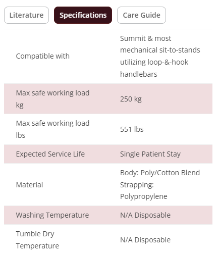 The disposable sit to stand sling with leg straps is designed to move a patient easily and comfortably. This sling incorporates a padded back panel, multi-loop adjustable interface, and is color-coded for sizing. The safe working load is 551 lbs.