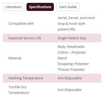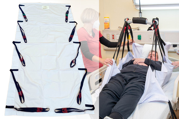 The disposable repositioning sling is made of a breathable poly/cotton material designed to increase skin safety and remain under a patient. This repositioning sling assists with turning, boosting, & transferring. The safe working load is 1000 lbs for the standard size and 1200 lbs for the bariatric size.